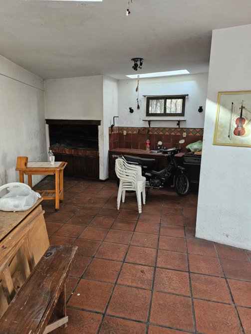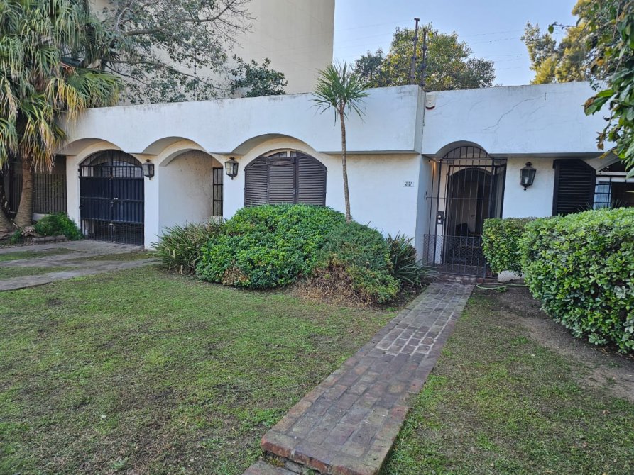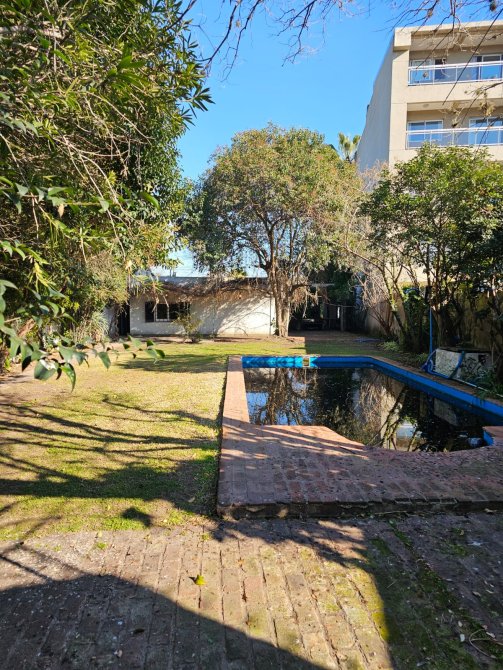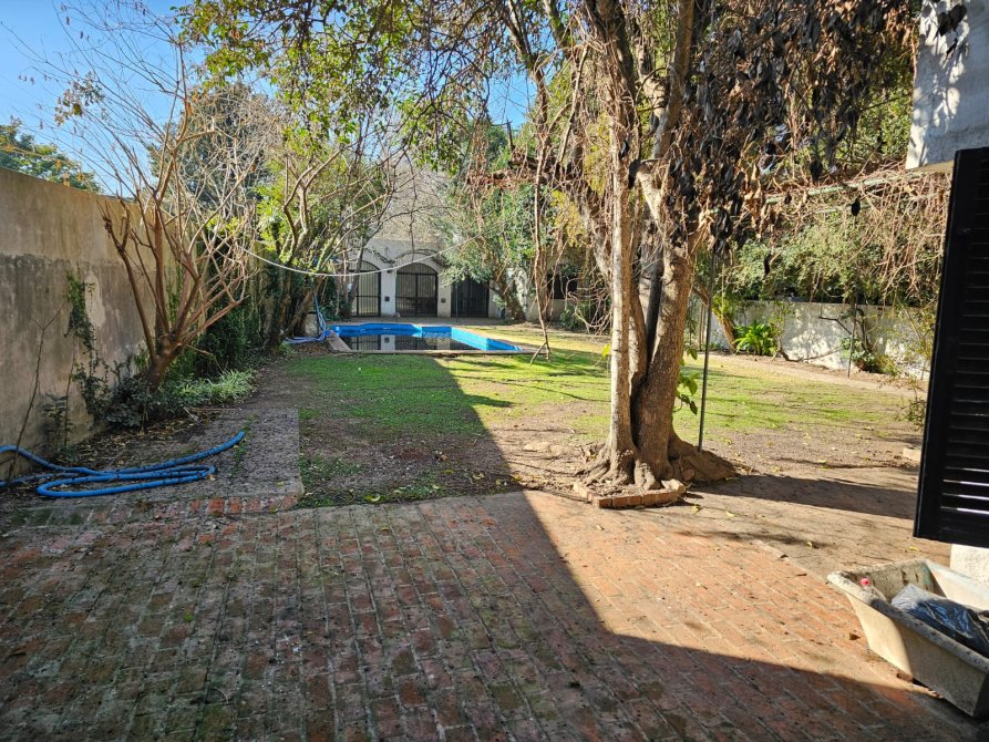 Detrás del inmueble se observa una gran cantidad de arboleda, importante parque con piscina.; la misma posee bombeador propio sumergido con perforación y sistema de filtro; seguido a esta se encuentra el quincho con parrilla, equipado para recibir 40 personas o más y habitacion con baño de servicio.